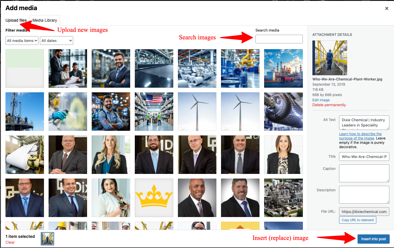 Section titled “Step 2: Select a New Image”- The WordPress Media Library will open