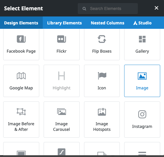 - Search for or scroll to find the “Image” element