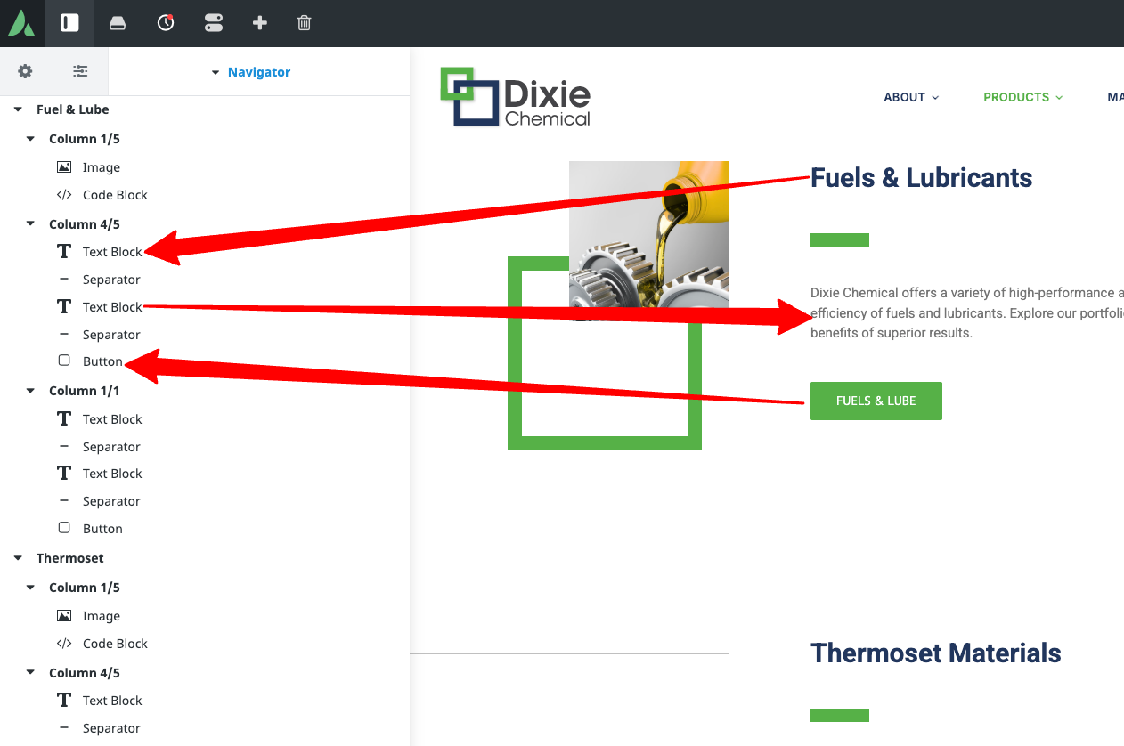 - Be aware of which site you’re working on when managing both Dixie Chemical and American Carbonyl websites