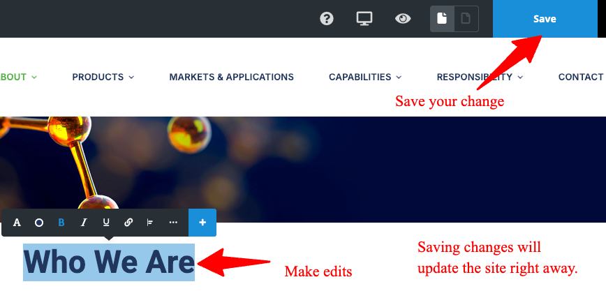 Section titled “Text Changes Not Saving”- Make sure you’ve clicked the Save button in the top toolbar
