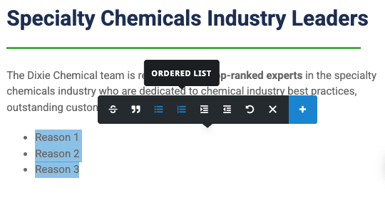 Section titled “Creating Bulleted Lists”- Place your cursor where you want the list